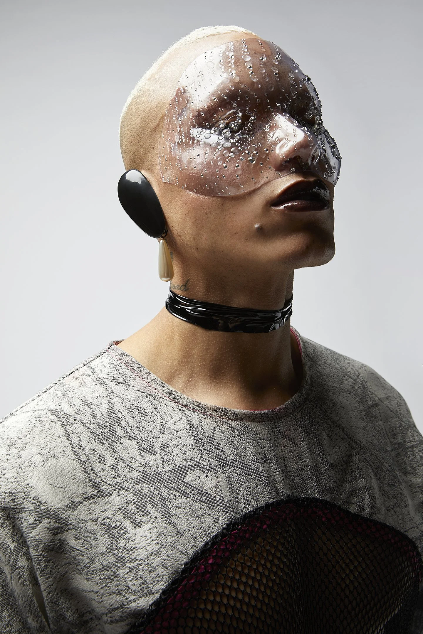 Functioning as both adornment and intervention, the piece challenges how the body is read and made visible, where absence becomes form and restraint becomes expression.